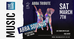 LIVE MUSIC – ABBA SOUNDS Join us for the return of Abba Sounds who gave us an amazing evening of the famous hits of Abba, it’s going to be a great evening with pair of Super Trouper Dancing Queens ready to get the party started. Share this: Share on X (Opens in new window) X Share on Facebook (Opens in new window) Facebook Post navigation Previous post LIVE MUSIC – SKA DUSTNext post Quiz Night 0 comments on “LIVE MUSIC – ABBA SOUNDS” Add yours → Leave a Reply Cancel replyYour email address will not be published. Required fields are marked *Comment * Name * Email * Website